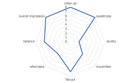 Dla kogoś, kto całe życie pije kawę jednej marki i parzy ją zawsze w ten sam sposób, ten wpis pewnie nie będzie być może za bardzo pomocny. Mamy jednak w naturze zamiłowanie do ciągłego poszukiwania nowych doznań a jednocześnie nie lubimy przebijać się przez gęstą sieć informacji. Chcemy mieć dobry jakościowo produkt ale nie chcemy tracić czasu na jego poszukiwania. I tu właśnie z pomocą przychodzi nam profil sensoryczny kawy, czyli gotowiec w postaci czytelnego, radarowego wykresu. Może on wyglądać np. tak: