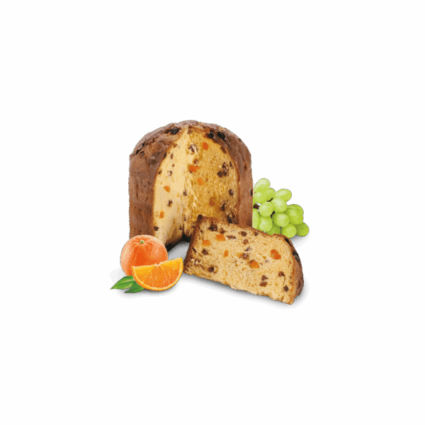 Składniki : Mąka pszenna (PSZENICA) , rodzynki sułtańskie (19%) masło (MLEKO) cukier, świeże żółtka JAJ, drożdże, kandyzowana skórka z pomarańczy(6%) [skórki pomarańczy(53) syrop glukozowo – fruktozowy, cukier, regulator kwasowości: kwasek cytrynowy] ,emulgator: mono i disacharydy kwasów tłuszczowych pochodzenia roślinnego, syrop cukru inwertowanego, sól, naturalny aromat.