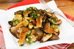 Kilka sztuk dorodnych boczniaków umyj i osusz na papierowym ręczniku i przekrój na pól/ względnie ćwiartki. Ułóż na tacce do grillowania, lub ruszcie grillowym. Po kilku minutach obróć tak, aby grzyby równolegle się przyrumieniły. W czasie kiedy boczniaki się grillują, pokrój drobno pęczek natki pietruszki, wymieszaj z oliwą truflową i posyp solą oraz pieprzem (możesz dodać rozdrobniony ząbek czosnku, ale wtedy aromat trufli będzie mniej wyczuwalny) . Zrumienione grzyby zdejmij z grilla, i delikatnie wymieszaj z masą pietruszkową. Równolegle z boczniakami możesz na grillu opiekać grzanki i podać je z nimi lekko posmarowane ząbkiem czosnku.