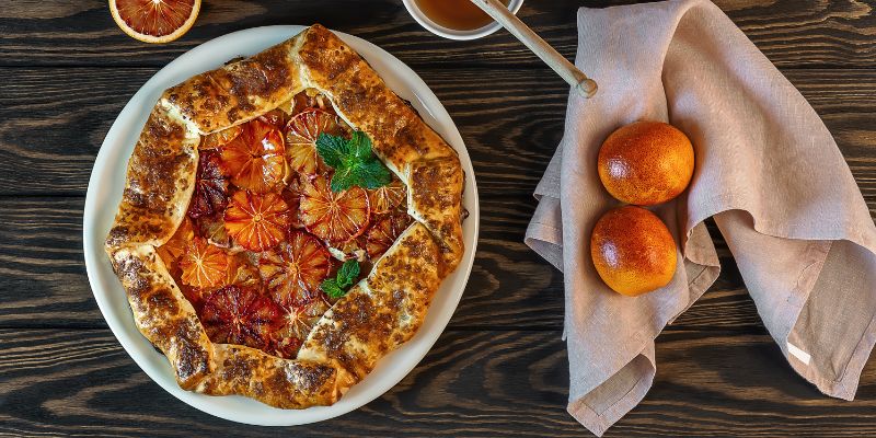 Rustykalne galette z migdałowym frangipane i czerwonymi pomarańczami